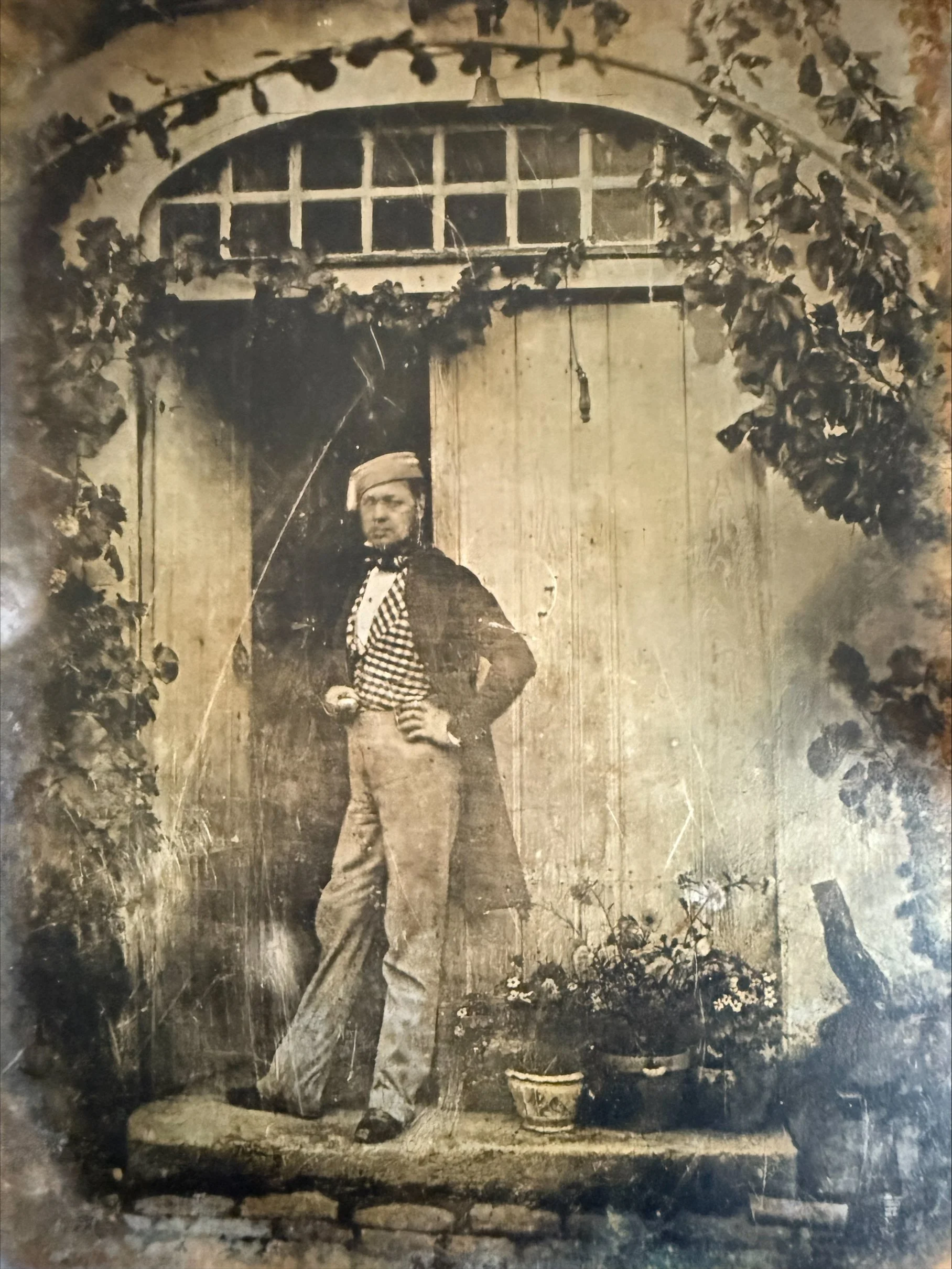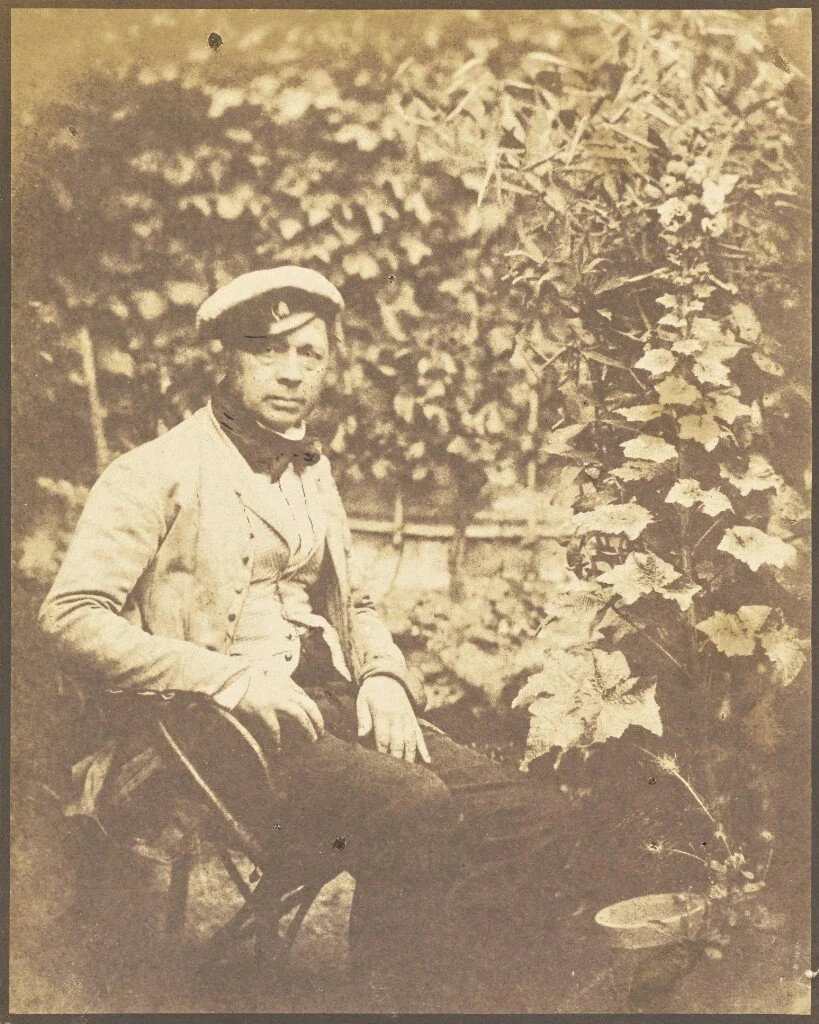 The Getty collection includes seven self-portraits by Bayard. In five of the self-portraits, he placed himself in garden settings. This was, in part I imagine, a practical decision since natural light was required to create photographs at the time. However, his choice of setting also reflects his passion for plants (much like Anna Atkins). He came from a family of gardeners—his maternal grandfather worked in the extensive grounds of the abbey in Breteuil, the village where Bayard grew up. His father, a justice of the peace, was a passionate amateur gardener who grew peaches in an orchard attached to the family home. The gardens featured in Bayard’s self-portraits are thought to be part of the family property in Breteuil or his own home in Batignolles—an area that was just on the outskirts of Paris.