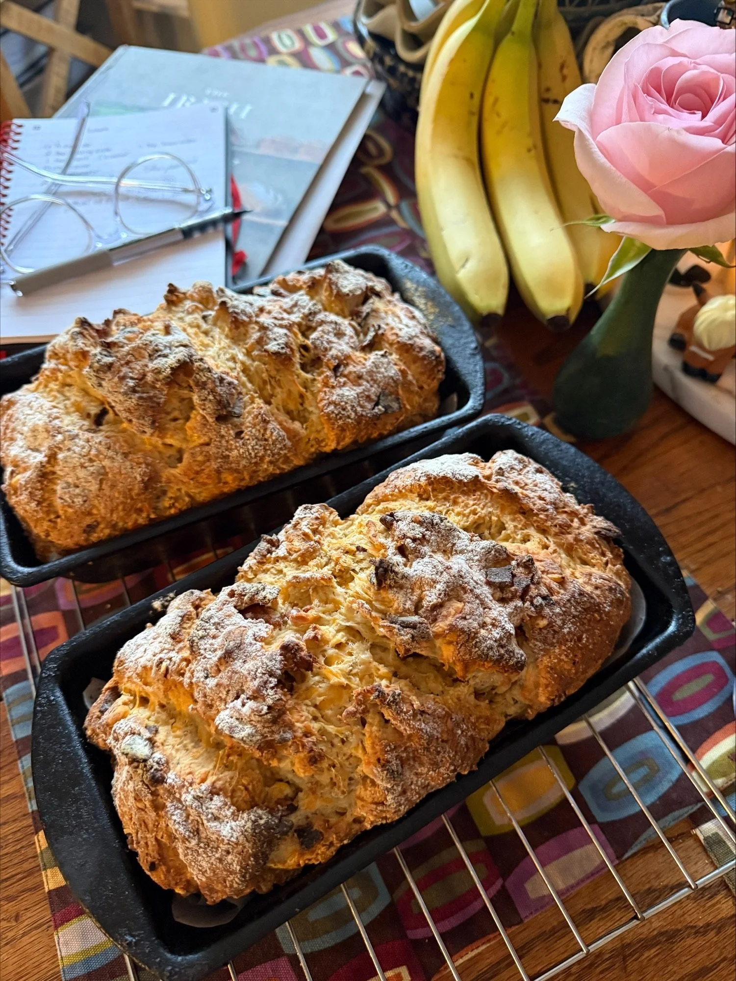 As I studied the memories of Yeats this week, my own mind journeyed back to Ireland, specifically Dublin, and the adventures Colin, Katie and I shared on our graduate studies “spring break” dancing among the leprechauns. One morning, while my conspirators further enjoyed their limerick-filled dreams, I sunk into a corner booth of the hotel’s lounge, opened my current novel-of-choice, and ordered an espresso. It arrived with a chef’s gift – two thick slices of toasted soda bread, studded with crisp bacon and brisk Irish cheddar, and deliciously dripping with a slab of homemade butter. I can still taste every crumb.