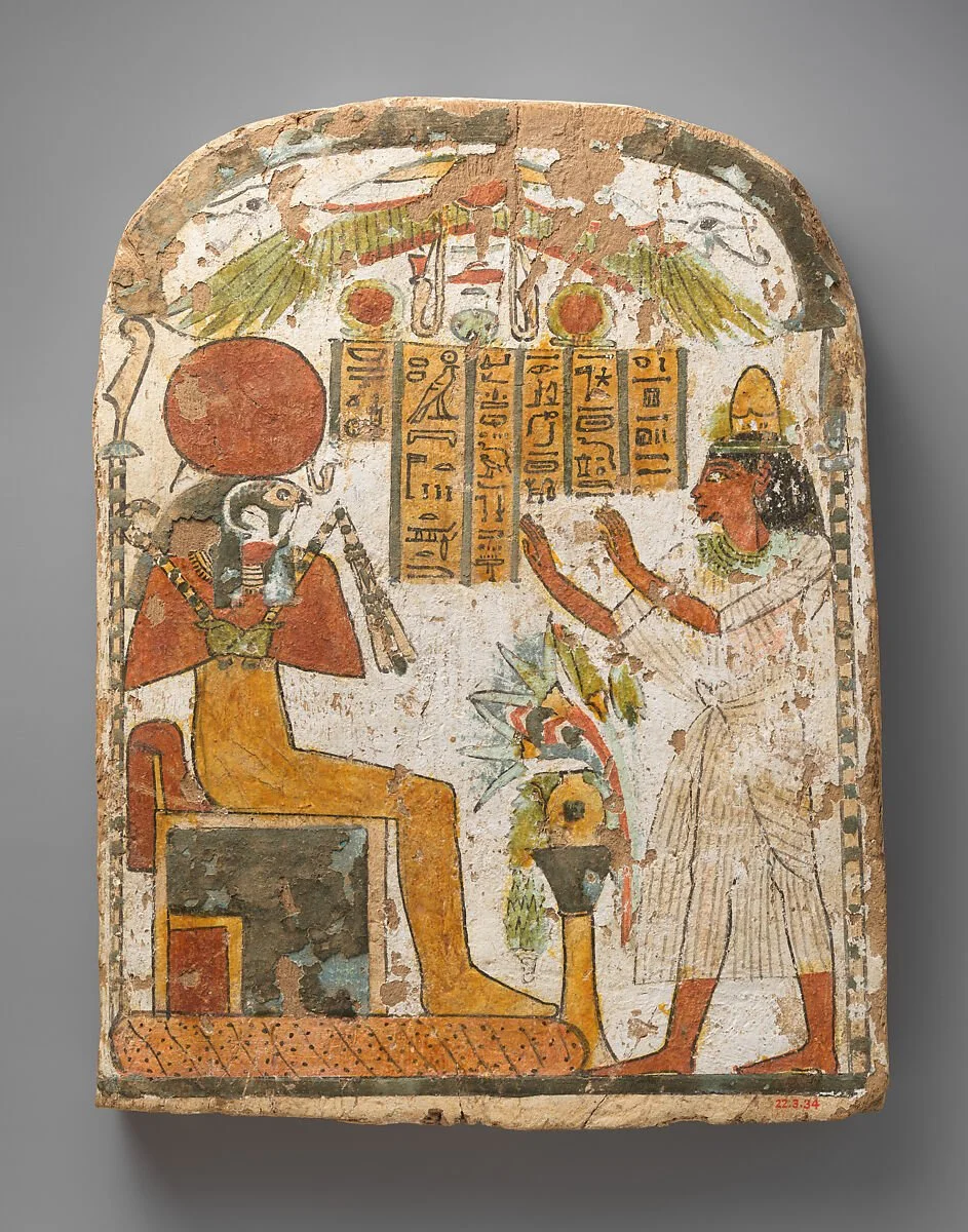 Re was most frequently joined with the falcon deity Harakhty to form Re-Harakhty, usually translated as “Horus of the Horizon,” but, according to Oppenheim, perhaps more subtly intended to connect Horus to a place of transition. The combination of the god could then be easily equated to the rising sun.