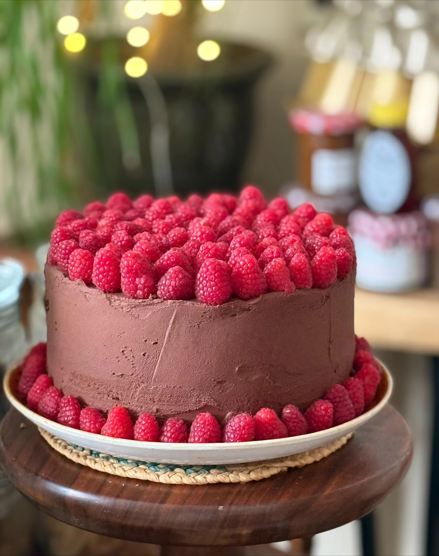 7) Arrange the raspberries in a circular design on top.