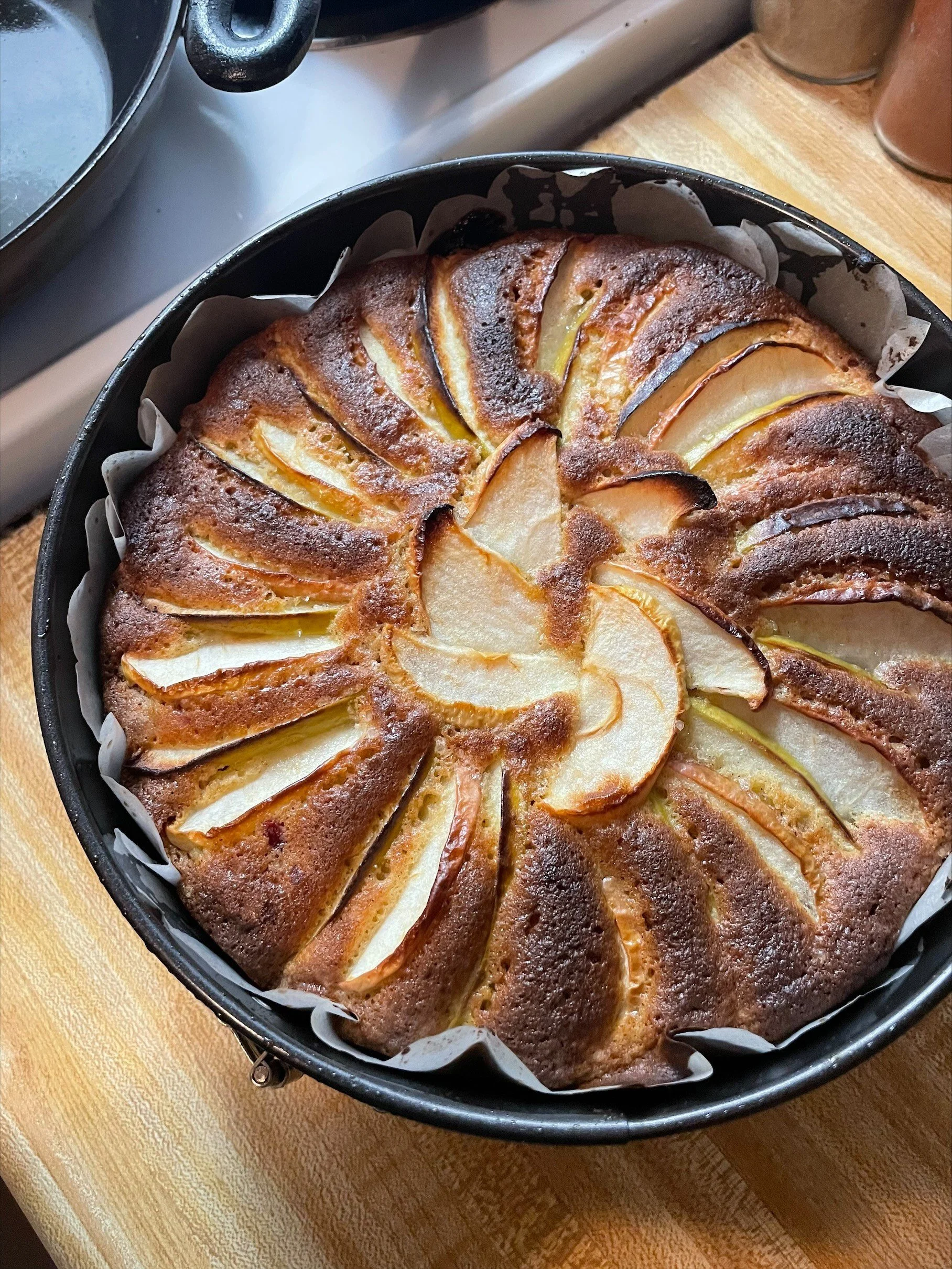 9) Bake 50-55 minutes until the cake feel firm and the apples are slightly browned.