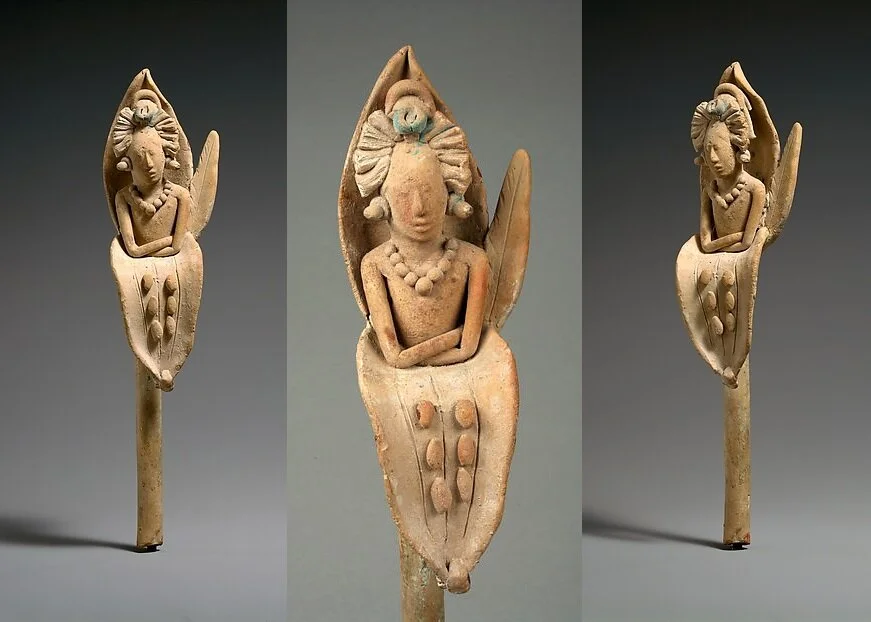 Dating back to the 8th century, this depiction of the Mayan god is thought to have been created on Jaina Island (present-day Campeche) in Mexico. According to the Metropolitan Museum of Art, fertility, jade, beauty, and the idea of being young were all things the ancient Maya combined when they thought of the Maize God.