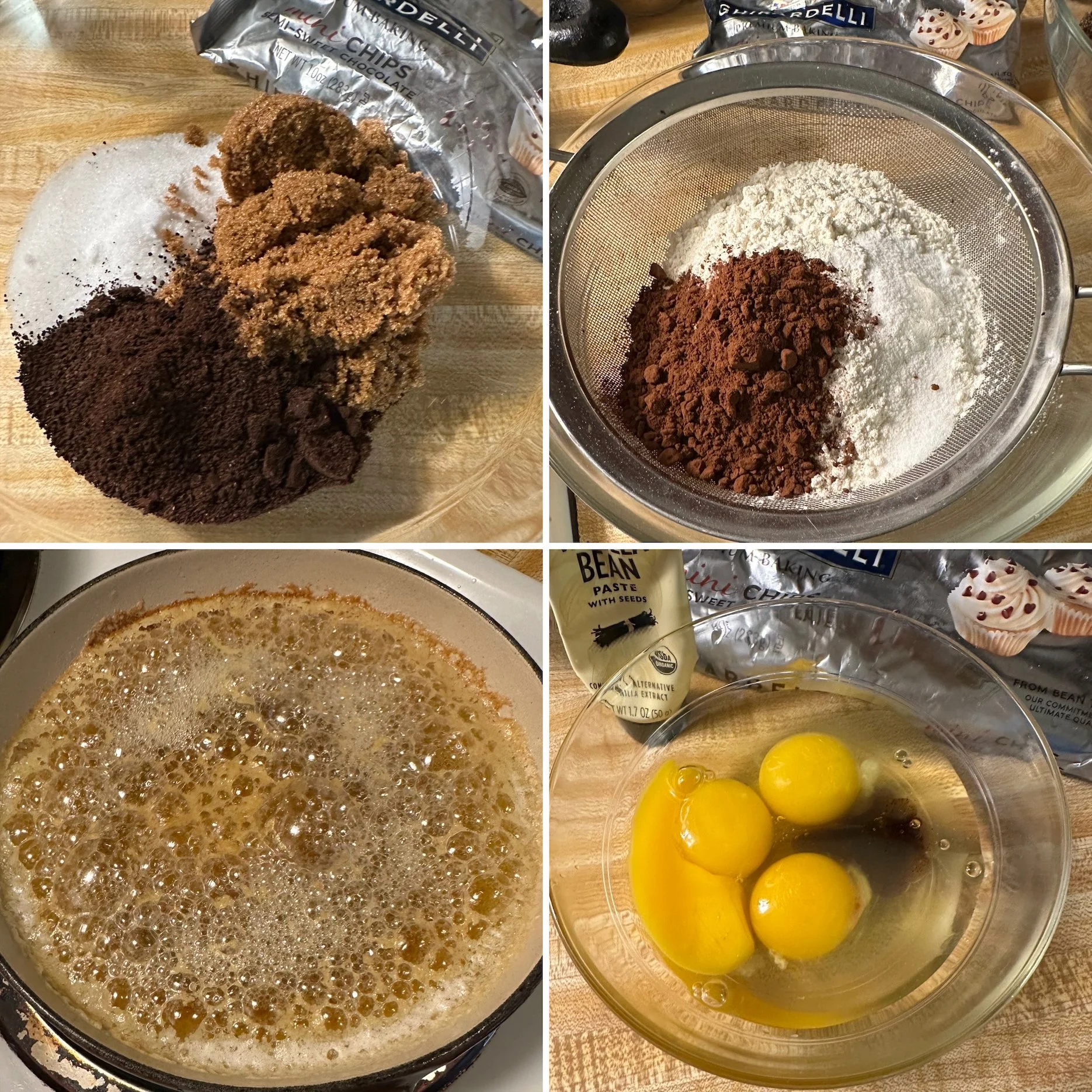 2) Brown the butter in a light-bottomed pan over medium high heat until it changes in color from pale yellow to golden brown and smells of caramelization. Immediately pour over the coffee/sugar and whisk to combine.