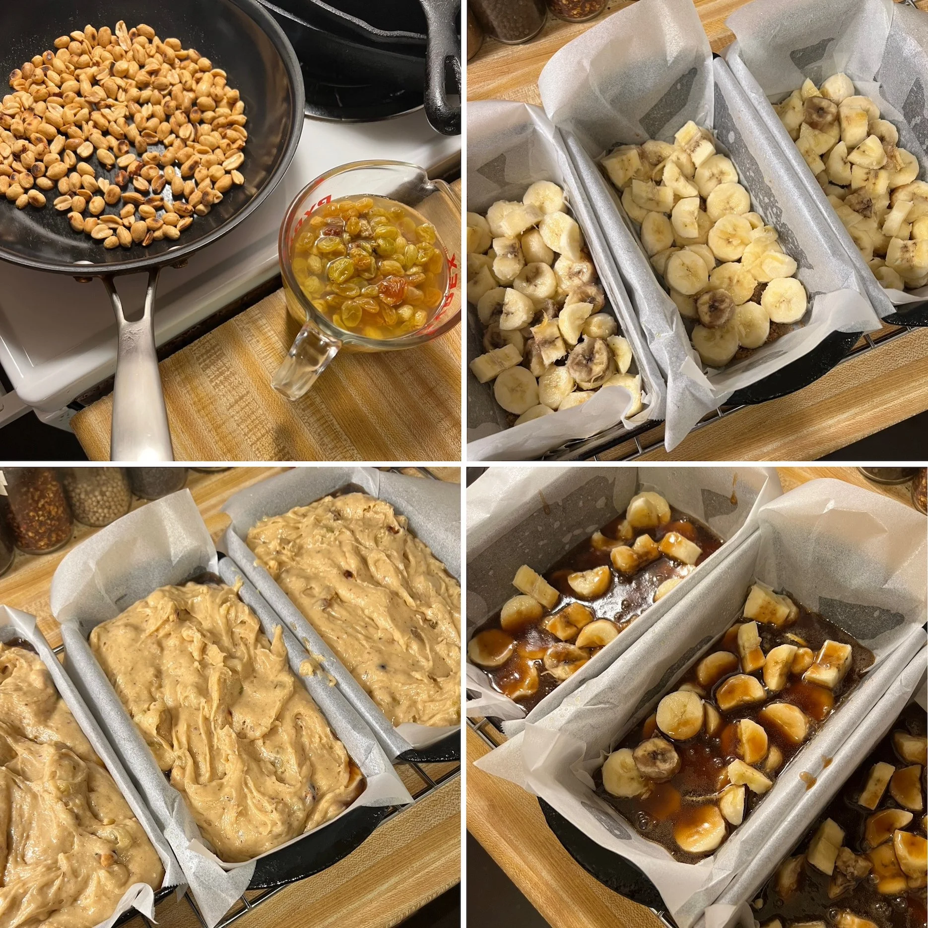 1) Preheat your oven to 325 degrees and line three loaf pans fully with parchment paper.