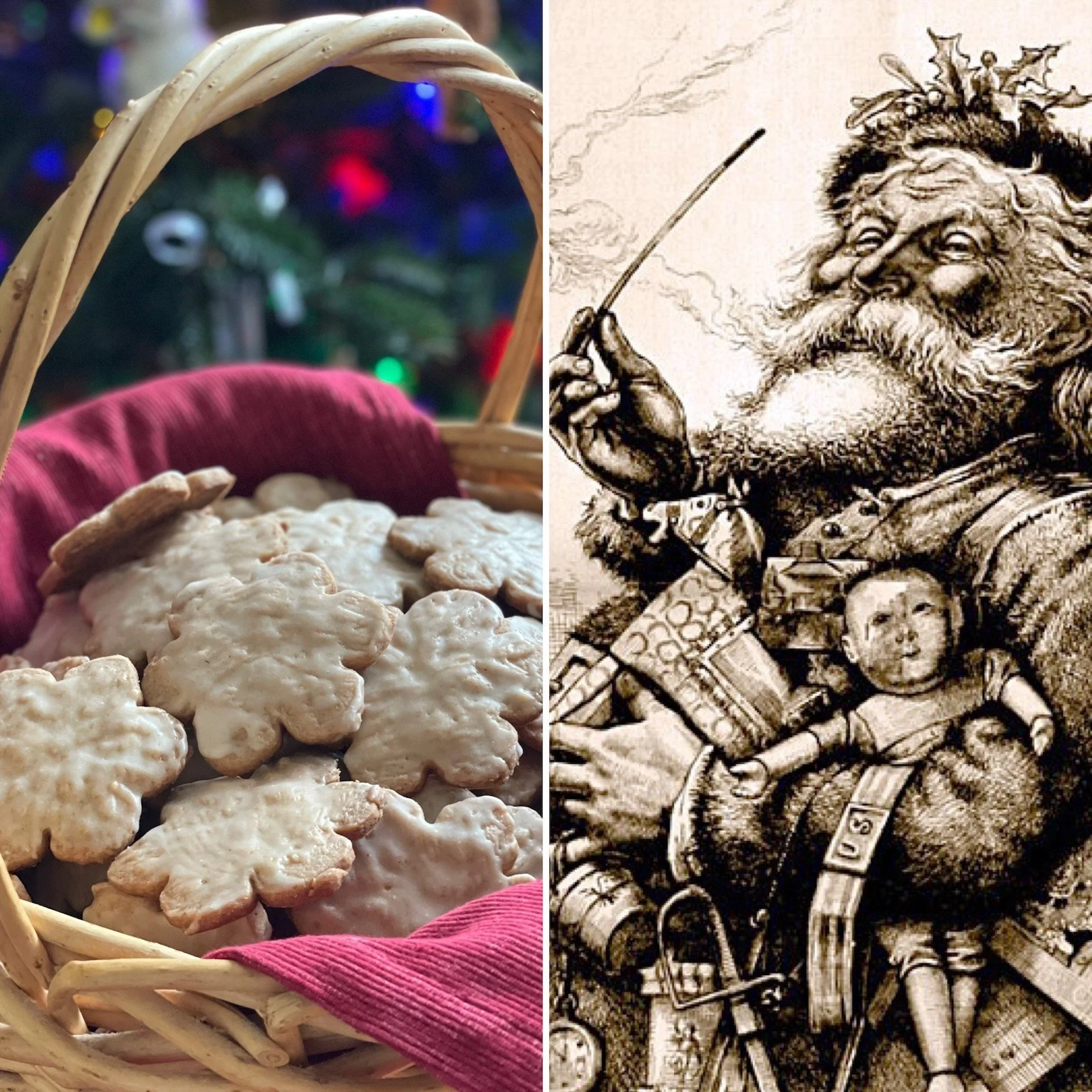 6) Roll the first portion of dough to a thickness of ¼ inch. Use a 2 ½” cookie cutter (I prefer a snowflake) dipped in flour and gently place no more than one dozen cookies on a tray to bake. Gather the scraps together and add to the second portion when rolling out to cut.