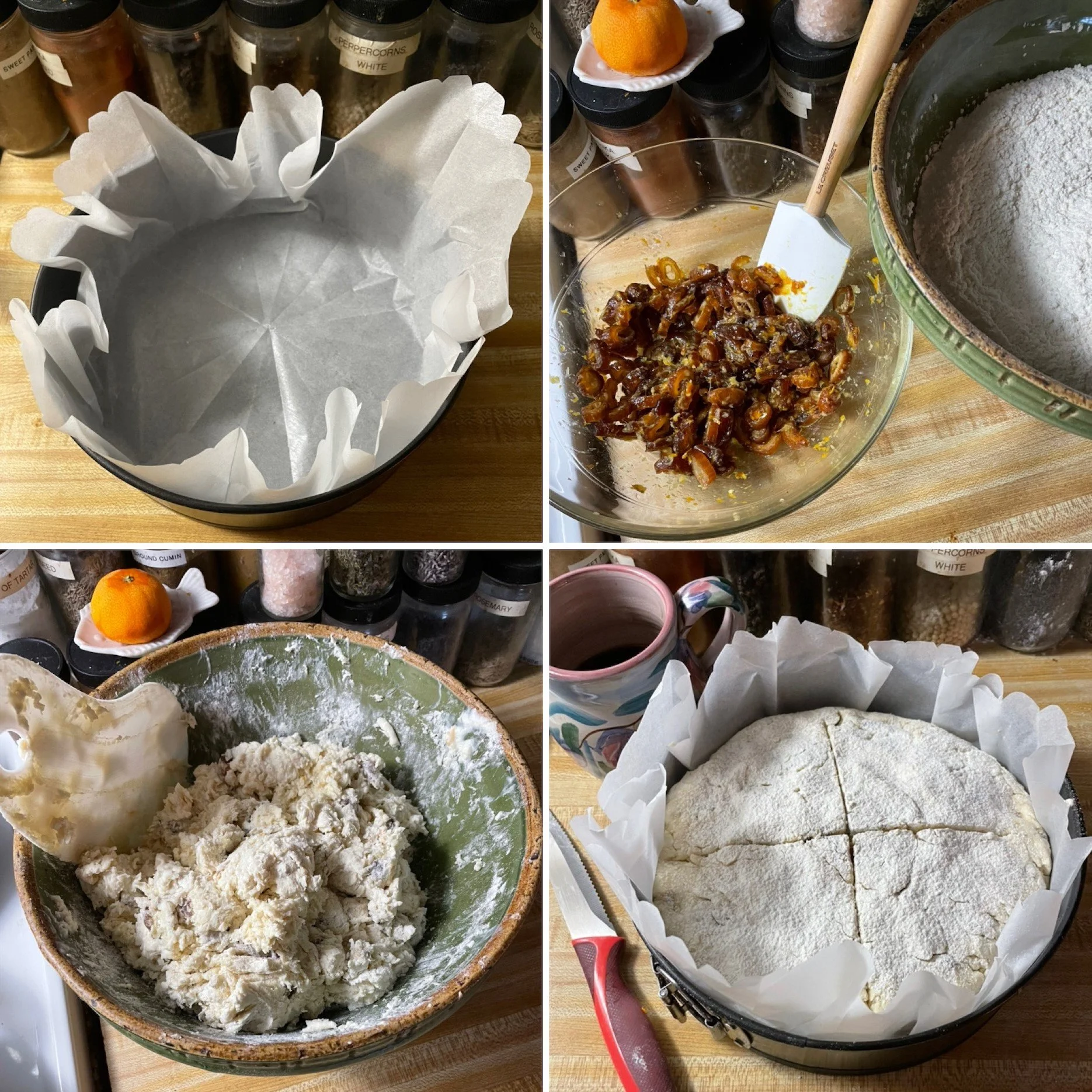 1) Preheat your oven to 425 degrees. Cut a 12” circle of parchment paper and fit it into an 8” springform pan.
