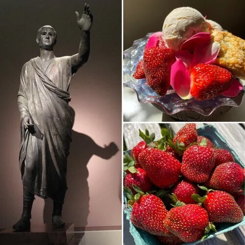 4) Remove the pan from the heat and stir in the rose water (start with 1 Tbsp) and vanilla paste. Safely taste the hot cream for your desired flavor. Add more rose water if necessary. Strain into another bowl, cover with plastic wrap and chill overnight.