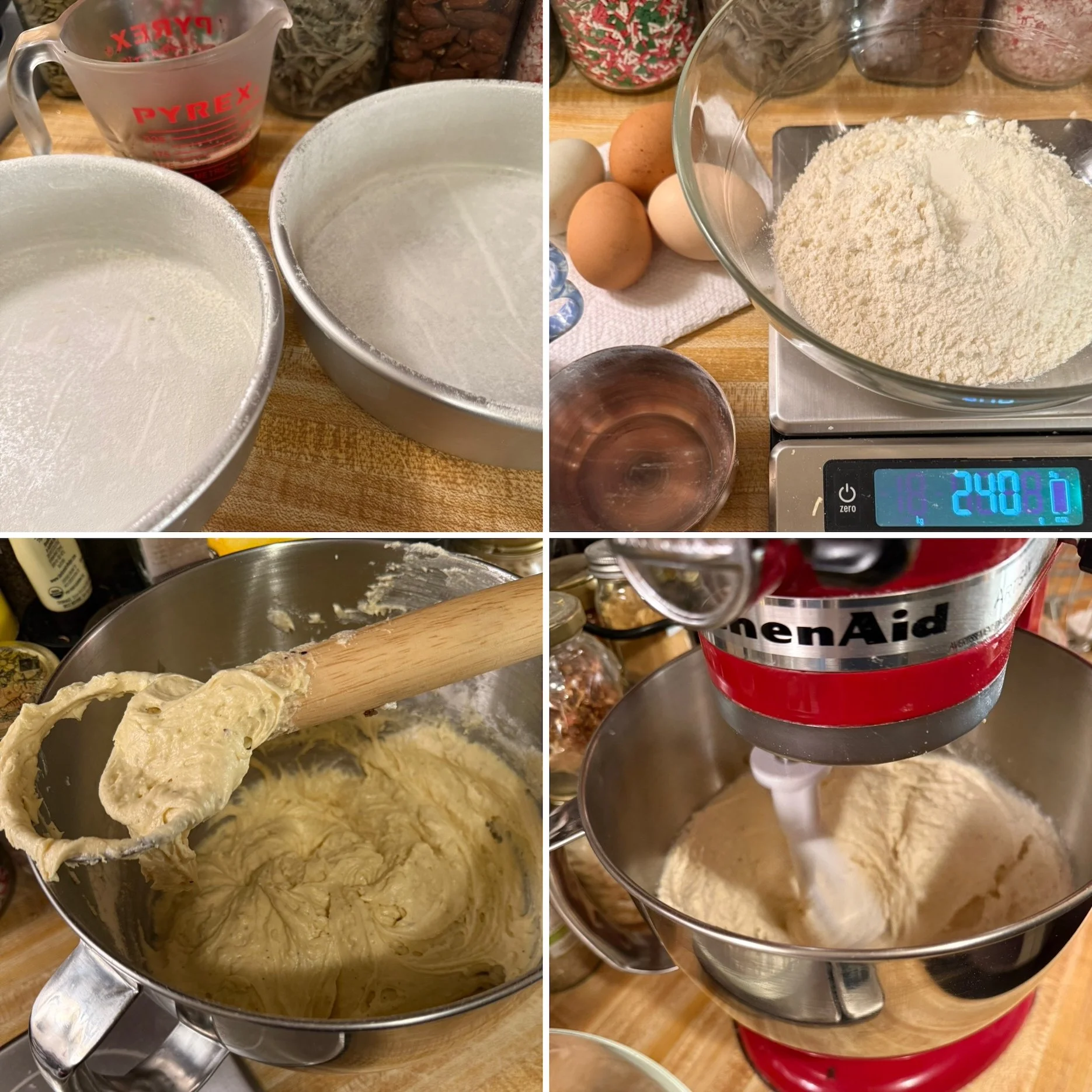 1) Preheat your oven to 350 degrees and butter two 8” cakes pans. Line them with parchment paper circles, butter the circles and then lightly flour the pan. Shake out all excess flour.