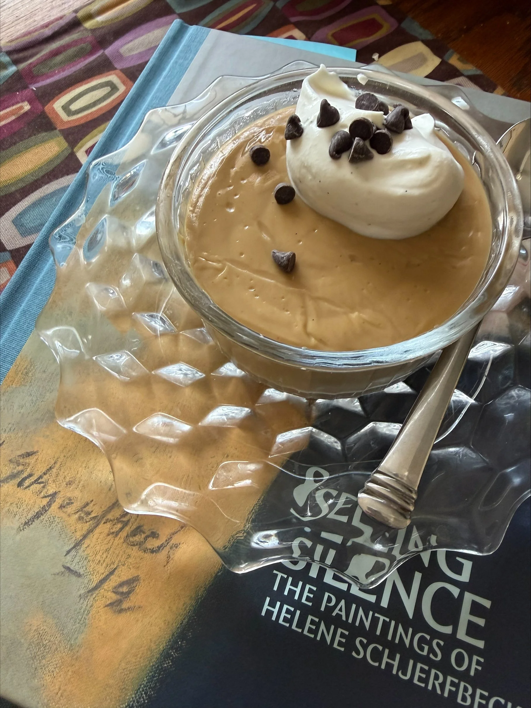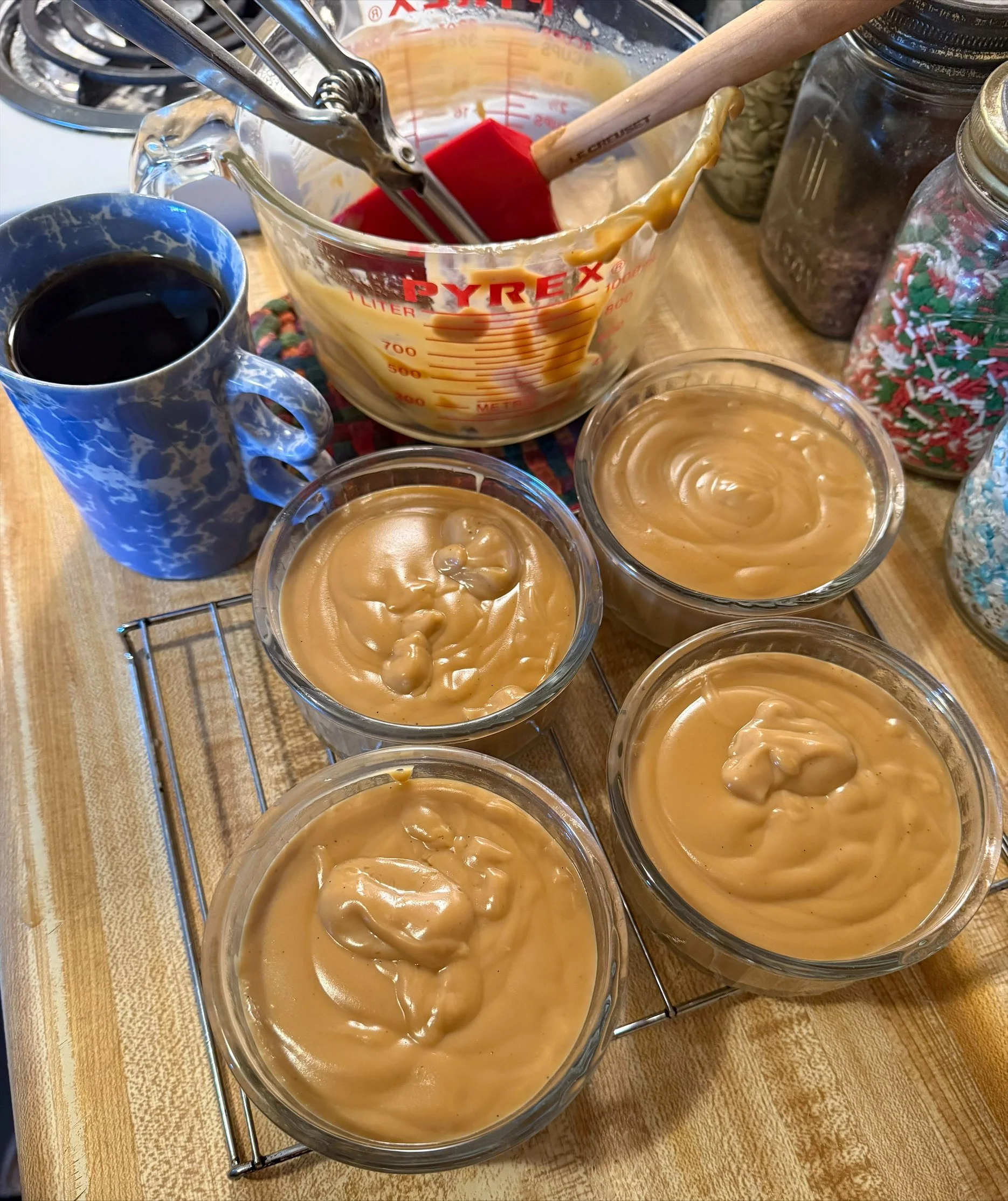 4) Portion the pudding into four serving containers. Lightly press plastic wrap squares onto the puddings in order to prevent a “skin” and then chill the puddings for at least two hours before serving.