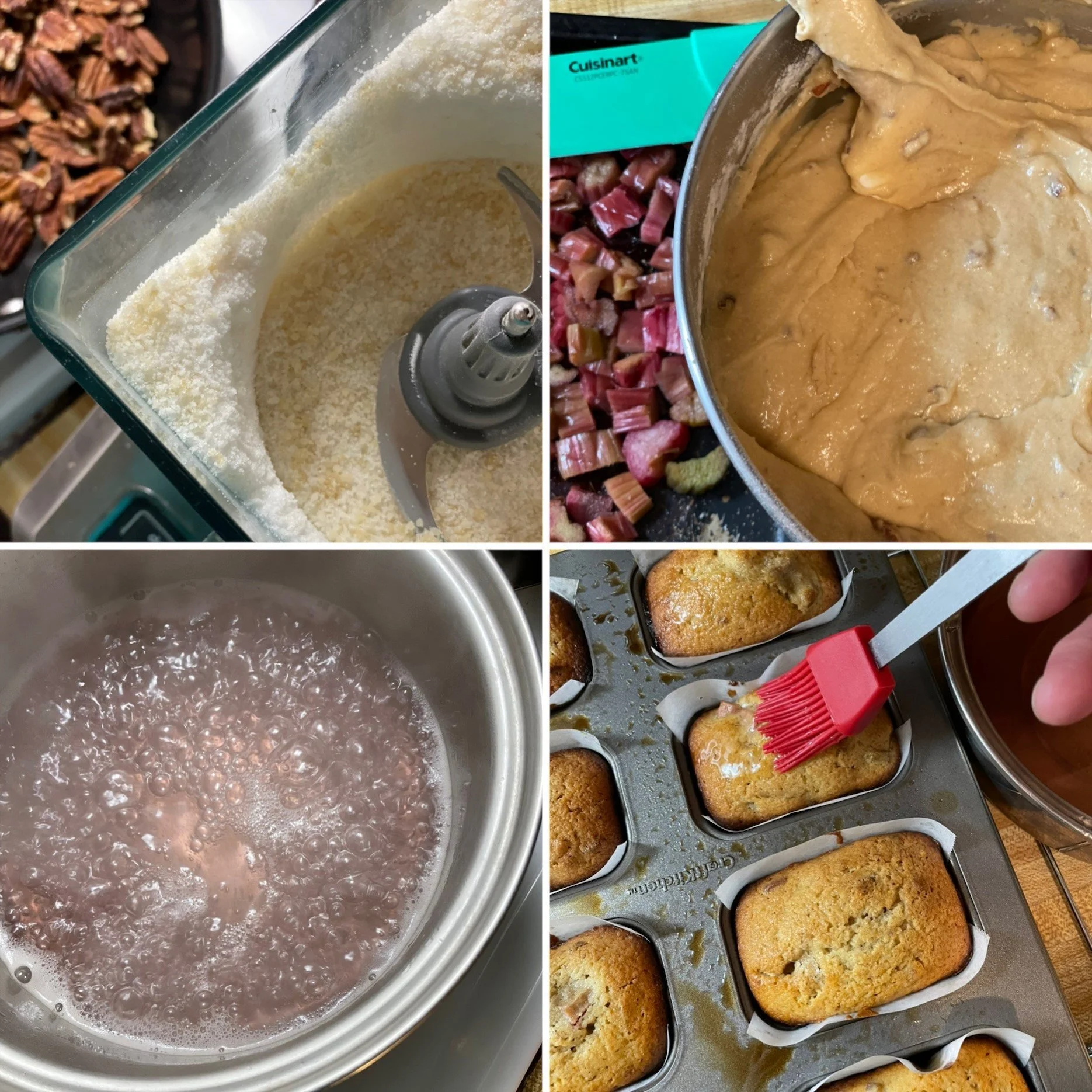 Rhubarb Poundcakes with Roasted Pecans and Crystalized Ginger